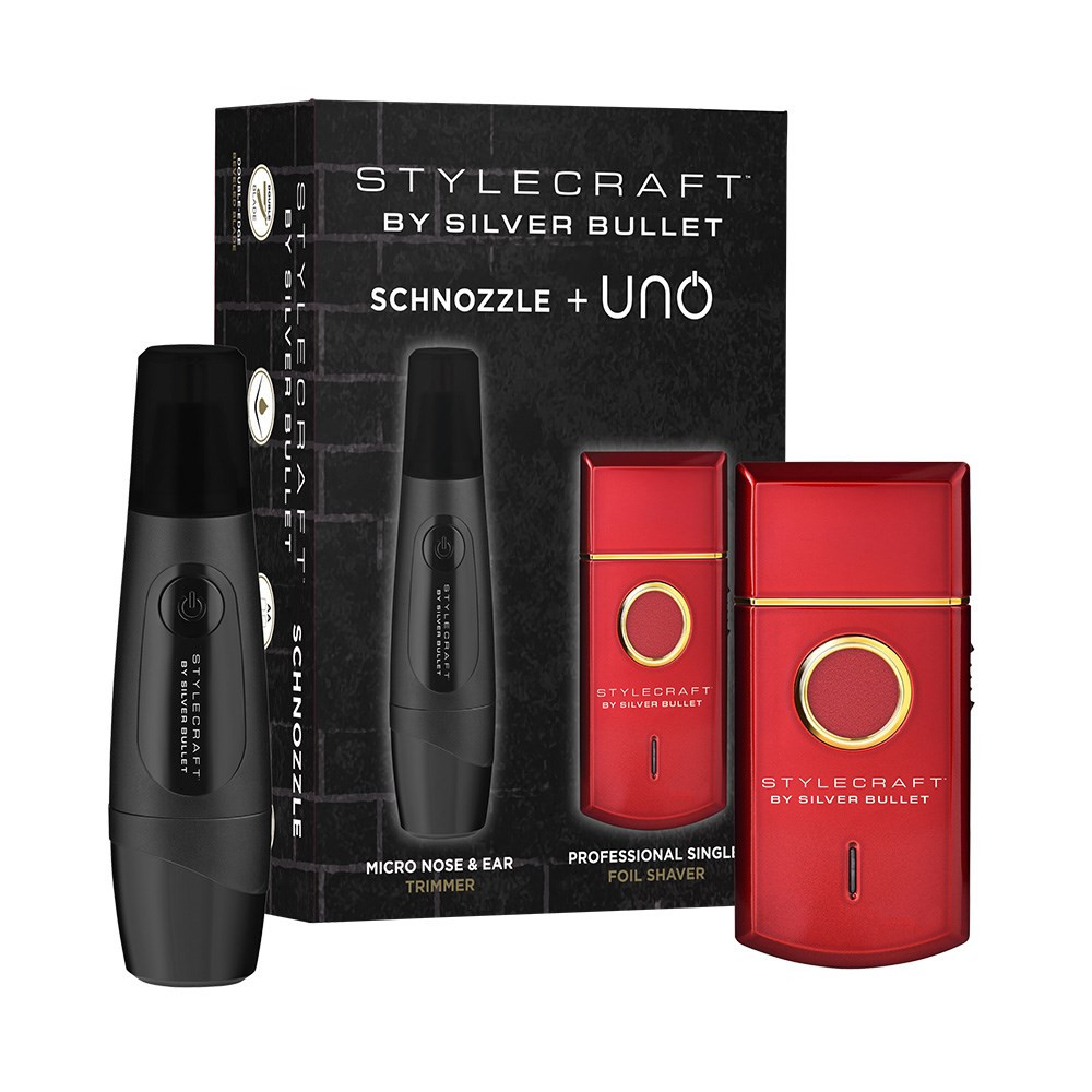 Stock the grooming tool your male clients never knew they needed — and won't be able to leave without. The StyleCraft by Silver Bullet Schnozzle and Uno Duo pairs two precision grooming essentials into one ultra-portable kit, covering every finishing detail from nose and ears to beard, neck and face.