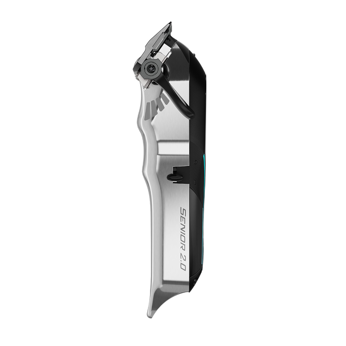 The durable metal bottom housing is carefully engineered for balance and comfort through the longest professional shifts. Patented grooves on the housing improve grip, control, and comfort during use — reducing hand fatigue and giving you a secure, confident hold whether you're working through heavy bulk removal or executing intricate precision fading. Bold accent lighting adds a distinctive visual signature that makes the Senior® 2.0 as striking on your workstation as it is impressive in your hand.